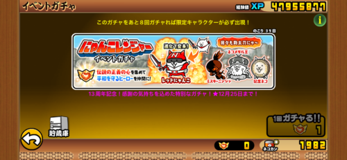 『にゃんこレンジャー』イベントガチャを回すためには、この後紹介する『13周年イベント』ステージをクリアする必要があります。