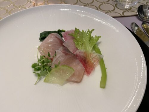 盛り付けの美しさもさることながら、『カンパチ』そのものの素材の良さは最上級だと思います。『KIARA』のレストランで食べる刺身などの鮮魚は『鮮度』という言葉だけでは言い表わせないほどの特別な食感をおぼえます。