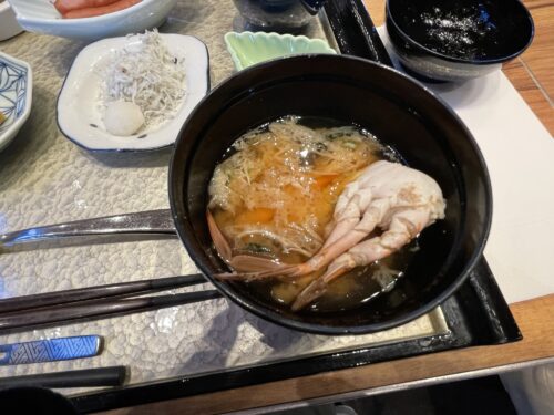 味噌汁も蟹入りでありがたいです。